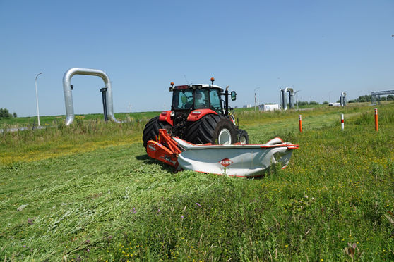 Maai- zuig combinatie uitgerust met ecologische schijvenmaaier